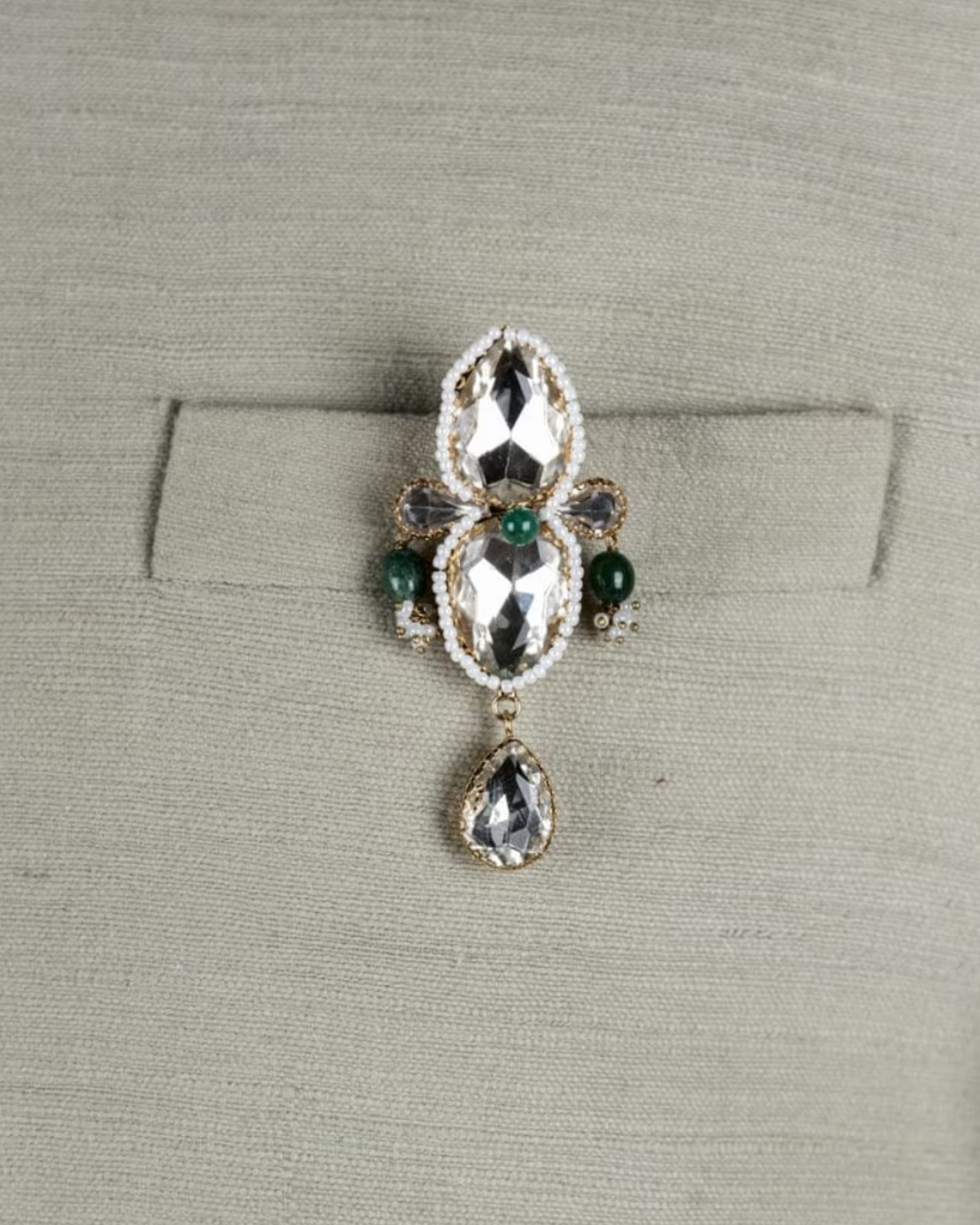Safawala Silver Green Stone Designer Brooches | Groom Turban Pagdi Sherwani Wedding Accessory